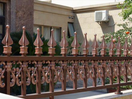 1、陽臺鋁藝護(hù)欄欄桿的材質(zhì)選用:依據(jù)圖紙以及客戶實(shí)際要求在建筑規(guī)范允許的范圍內(nèi),并保證結(jié)構(gòu)可靠性、安全性??紤]經(jīng)濟(jì)性因素,一般結(jié)構(gòu),選用Q220B型板,金屬材料機(jī)械性能能夠保證,材料性能能夠保證設(shè)計對一般結(jié)構(gòu)金屬造型的各項要求。,  安誠護(hù)欄從圍欄護(hù)欄產(chǎn)品方面脫穎而出的方法:,  4、廠家的生產(chǎn)加工工藝:正規(guī)廠家生產(chǎn)的別墅鋁藝大門,其加工比較精細(xì),切線流暢、角度一致,在拼接過程中應(yīng)該不會出現(xiàn)較明顯的縫隙,密封性能好,開關(guān)順暢。劣質(zhì)的庭院別墅大門,特別是鋁合金室外產(chǎn)品如果加工不合格,會出現(xiàn)密封性質(zhì)問題,不僅漏風(fēng)漏雨,而且在強(qiáng)風(fēng)和大的外力的作用下,玻璃會出現(xiàn)炸裂、脫落現(xiàn)象,從而給業(yè)主造成損失財物甚至傷人的現(xiàn)象。,  若發(fā)現(xiàn)陽臺護(hù)欄曾經(jīng)開端有銹斑,則應(yīng)該盡早用棉紗蘸機(jī)油涂于銹處,這樣能夠除掉銹跡,而不能直接用砂紙和其他糙面資料休止打磨。,  一、門縫尺寸可通過鉸鏈間隙、伸縮螺釘松緊來調(diào)整。
